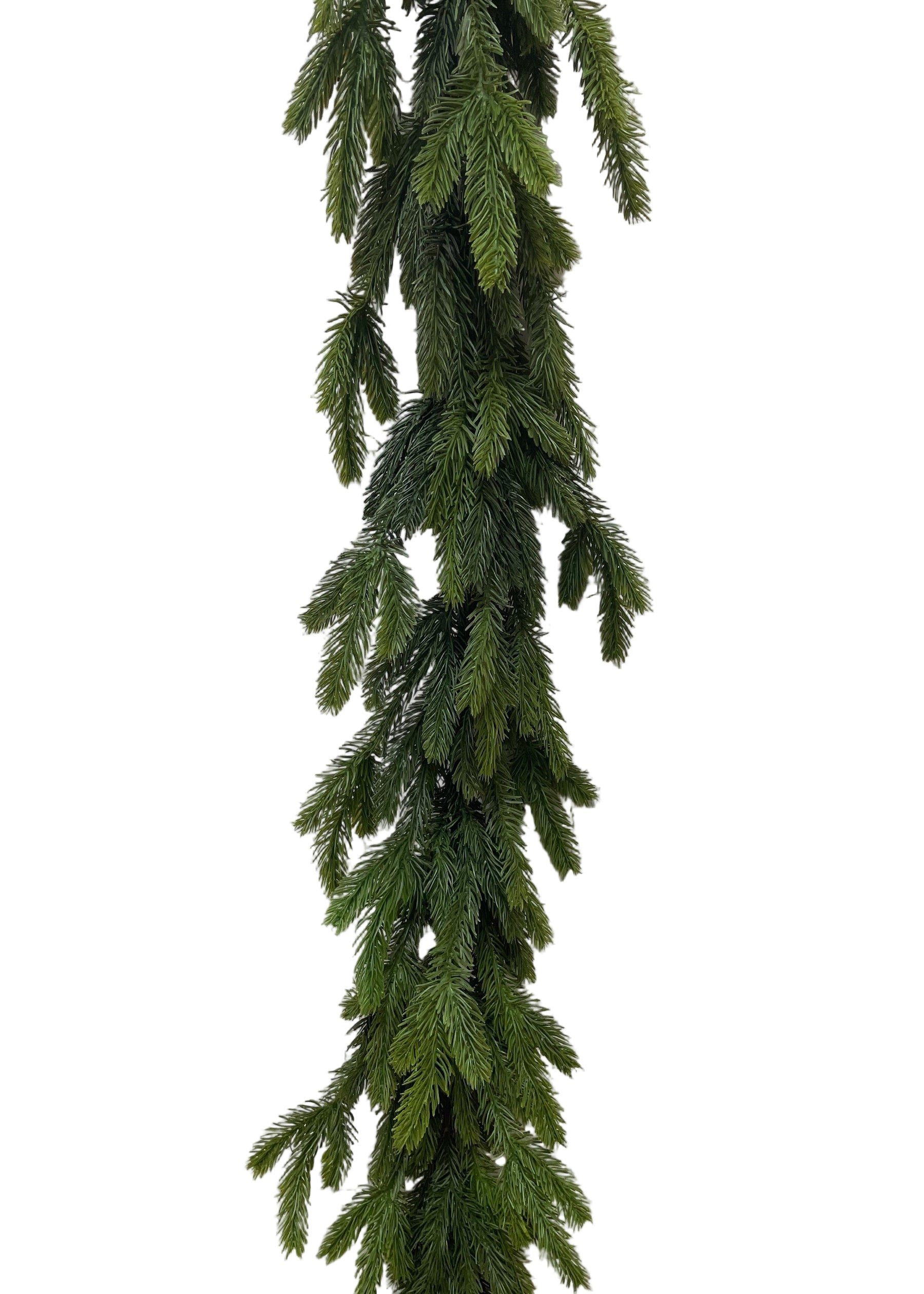 Measuring 10 feet, this Fresh Touch Spruce Garland provides a realistic greenery element, perfect for decorating mantles, tables, or any area in need of a natural accent. Exceptional quality that will be in your home for years to come. A great length for your staircase.