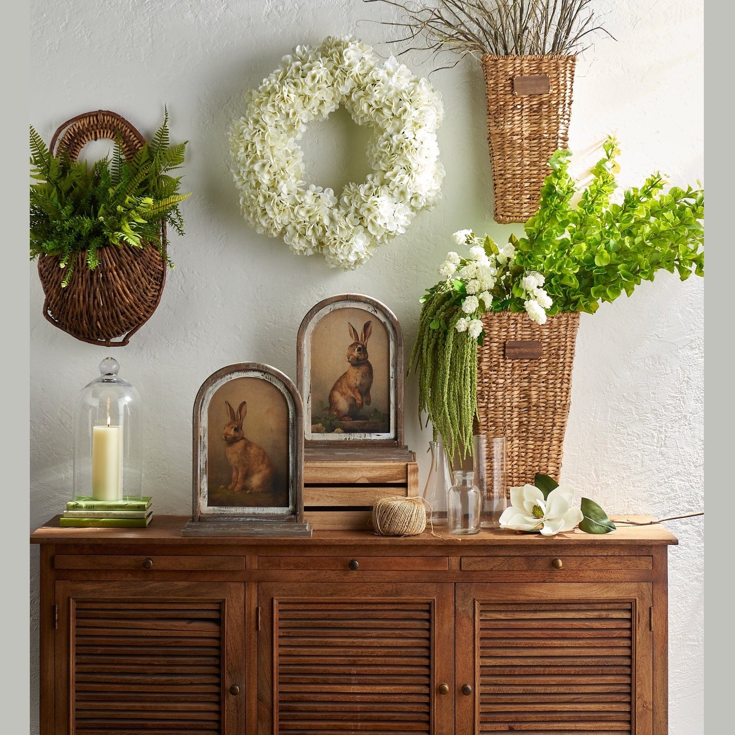 Crafted from water hyacinth and wicker. They are gorgeous hanging on a wall with or without flowers.