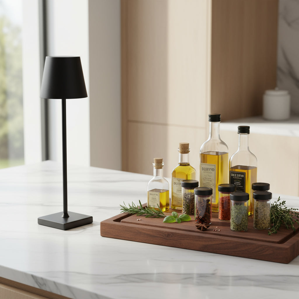 Our Best seller: Black LED Table Light - a stylish and functional lighting solution. Made of metal, this portable and cordless light provides eco-friendly LED illumination wherever you go. Its USB recharge-ability offers convenience and a battery run time of 15-24 hours, making it a perfect fit for any space. At 15 inches high you there are so many places you can use it.